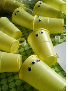 Købt engangskrus i farver (måske orange) og kom et par øjne på – så er der lagt op til Halloween stemning. Ideen her er ikke min egen, men venligst udlånt af He